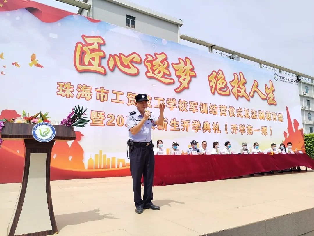 为进一步增强青少年学生的法律意识,深入开展法律宣传教育,引导广大青少年树立社会主义法治观念和法治意识,提高学校学生学法、知法、守法的自觉性,有效预防未成年人违法犯罪。9月2日,珠海市工贸技工学校法治副校长、洪湾派出所副所长莫贤彪,在我校军训结营仪式上,为全体师生带来了一堂别开生面的《青少年普法教育课》。