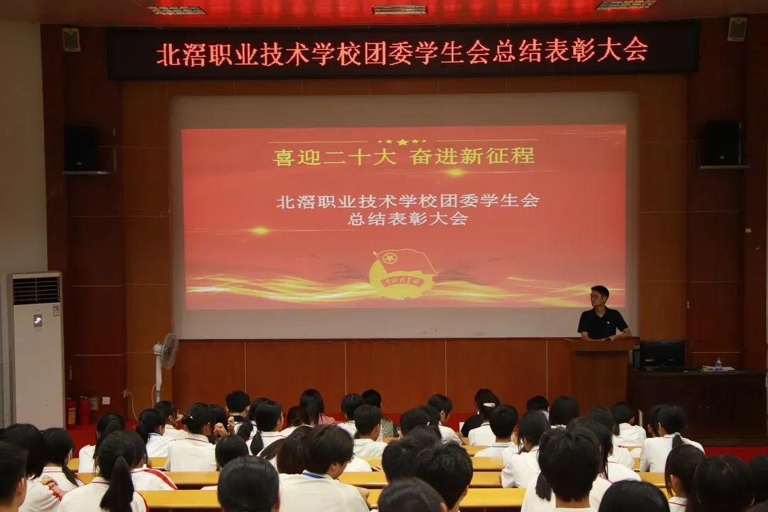 2022年9月29日,北滘职校团委学生会在大电教室举行了2022年团委学生会的迎新总结表彰大会。出席本次活动的领导老师有:德育副校长黄智聪、德育处主任高锡流、团委书记唐夏懿、副书记伍健倡,以及指导老师梁佩瑶老师、陈卓卓老师、何锦怡老师、詹梓阳老师。参与本次会议的人员还有团委干部、学生会干部及干事、青志协干部及干事和全体团员。大会由团委副书记伍健倡主持。
