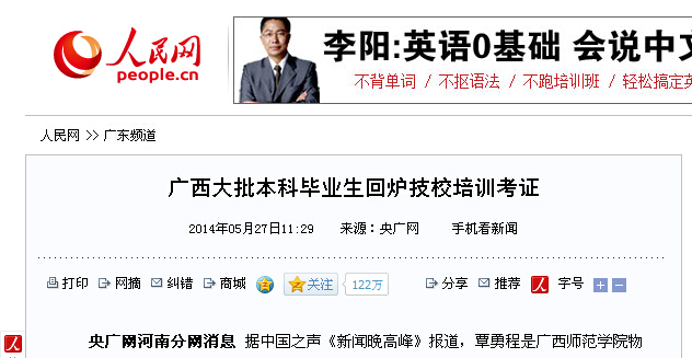 文章引用的原文标题:广西大批本科毕业生回炉技校培训考证