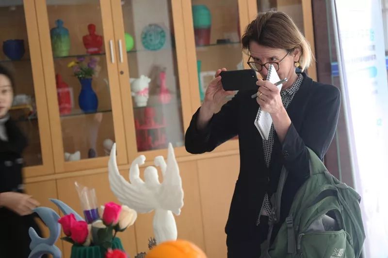 在参观的过程中,爱玛女士不断地用手机记录展现在她眼前的一切,并不时地翘起大拇指,特别是她在采访了第45届世界技能大赛时装技术项目全国选拔赛第一名的我院服装系学生温彩云后说:“我在中国采访了很多同类的院校,但广州市白云工商技师学院作为一所民办的技师学院,无疑是我见到的最好的学校之一。”