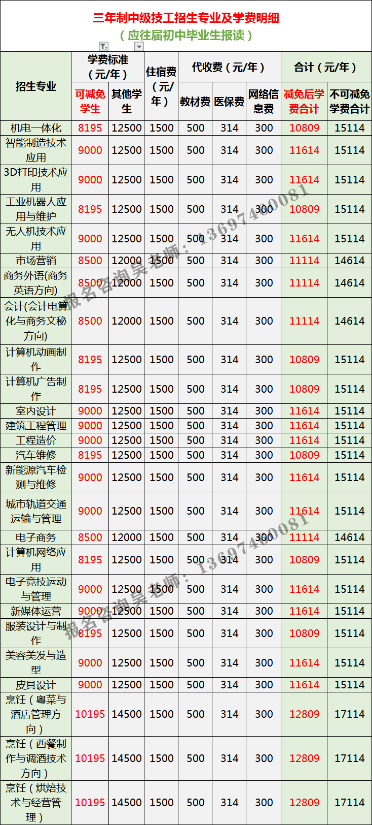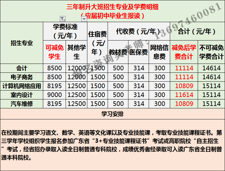 广州市白云工商技师学院初中毕业生报读专业及学费明细表。请大家仔细阅读哦!如需了解专业的详细信息,请咨询吴老师,微信:19925735870