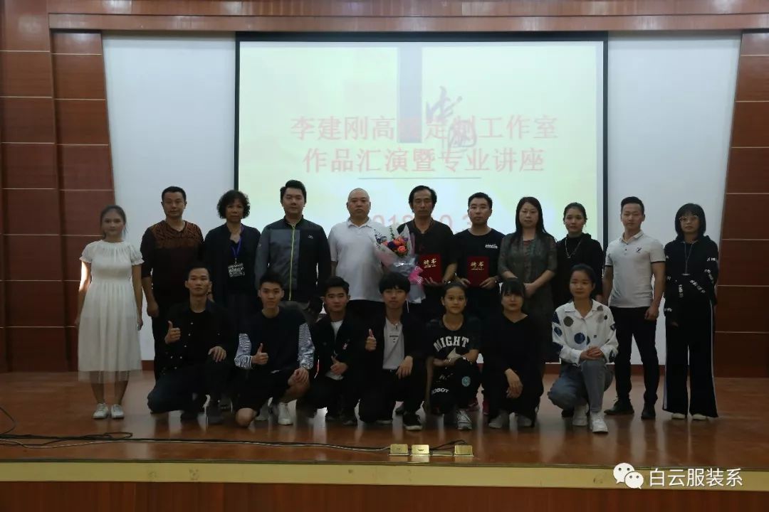 10月31日在学术报告厅2,举行李建刚大师工作室高定成果展。到场的嘉宾有,北京大国匠师有限公司副董事长李建刚、广州市一县一品电子商务有限公司运营总监朱广荣、广州市一县一品电子商务有限公司营销总监吴丽萍、广州市一县一品电子商务有限公司自媒体主编邝诗瑶、广州市一县一品电子商务有限公司行政主管田阳、广州市一县一品电子商务有限公司行政总监屈福明、广东汇美集团技术部经理毛厚虎、广州市白云工商技师学院副院长乔本新、 广州市白云工商技师学院教务处副处长马建霞、广州市白云工商技师学院服装系主任江少容、广州市白云工商技师学院德育管理副主任王安康及服装系全体师生。