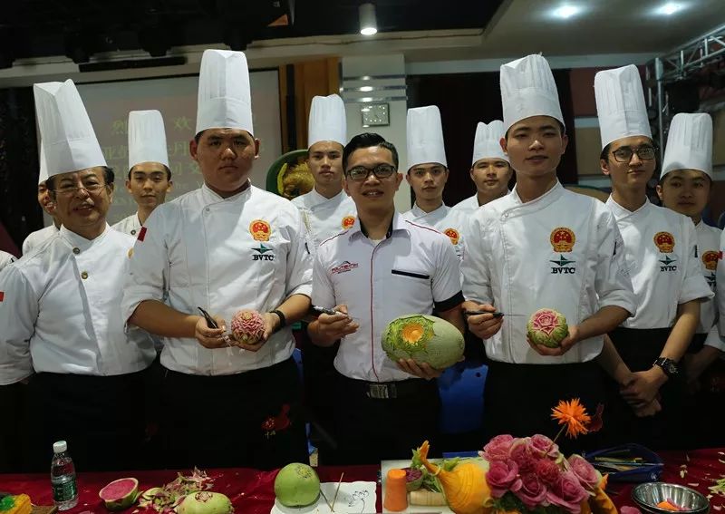广州市白云工商技师学院副院长乔本新、教务处处长周强、旅游与酒店管理系主任马庆文等领导热情接待了到访客人。双方就厨艺教育合作进行了深入的交流。