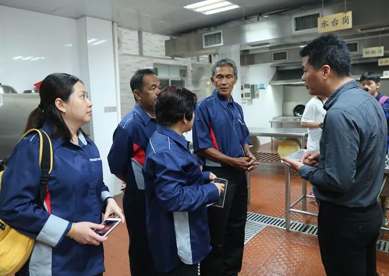 随后,MOHD JALIL BIN CHE JUSOF 院长一行在酒店管理系主任马庆文的陪同下,参观了烹饪、面点、西餐等实训中心。在参观的过程中,MOHD JALIL BIN CHE JUSOF院长感慨地说:“广州市白云工商技师学院的办学实力,让我们感到非常震撼。”