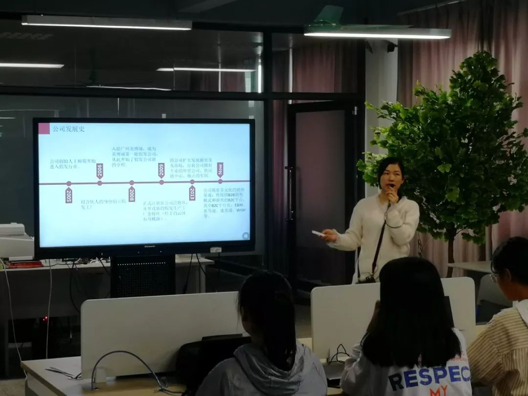启动仪式结束后广州金特丝美发用品有限公司黄嘉如女士做了校企合作培训,向同学们介绍Ebay平台站点分布、搜索技巧等知识。18级电子商务(跨境电商)高技班学生们认真聆听了培训,他们纷纷提出自己的问题,现场气氛活跃,对企业项目十分感兴趣,跃跃欲试。