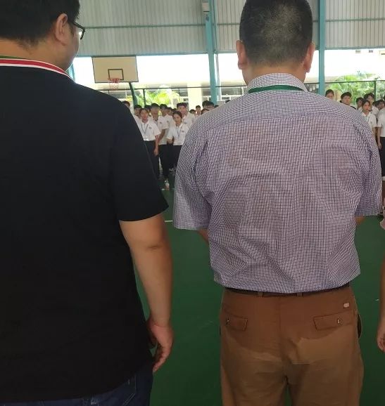 班主任汗流浃背与学生同军训